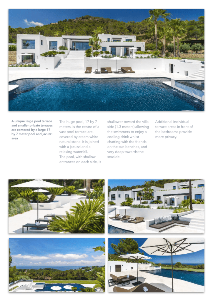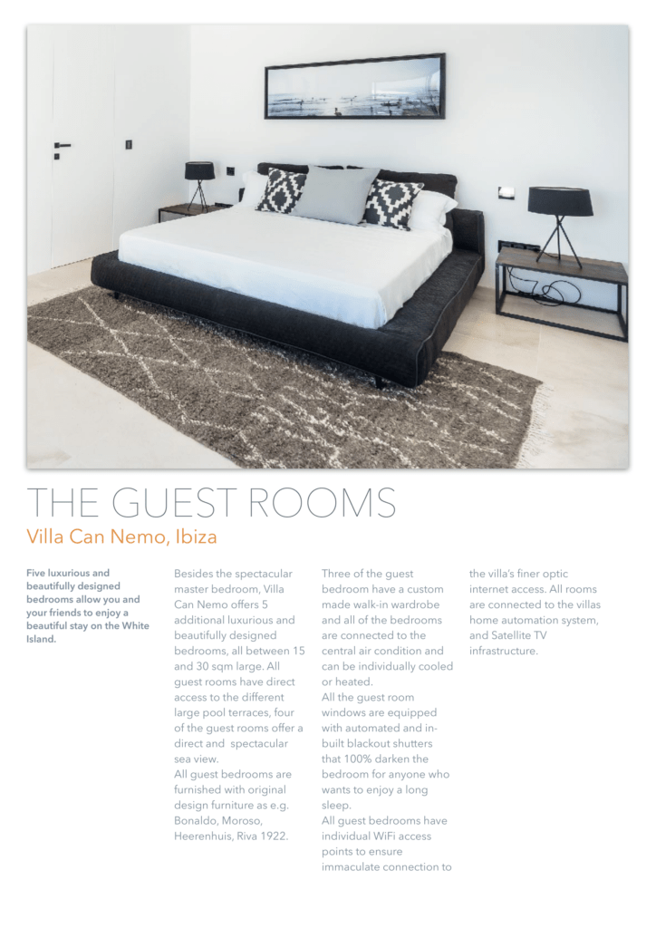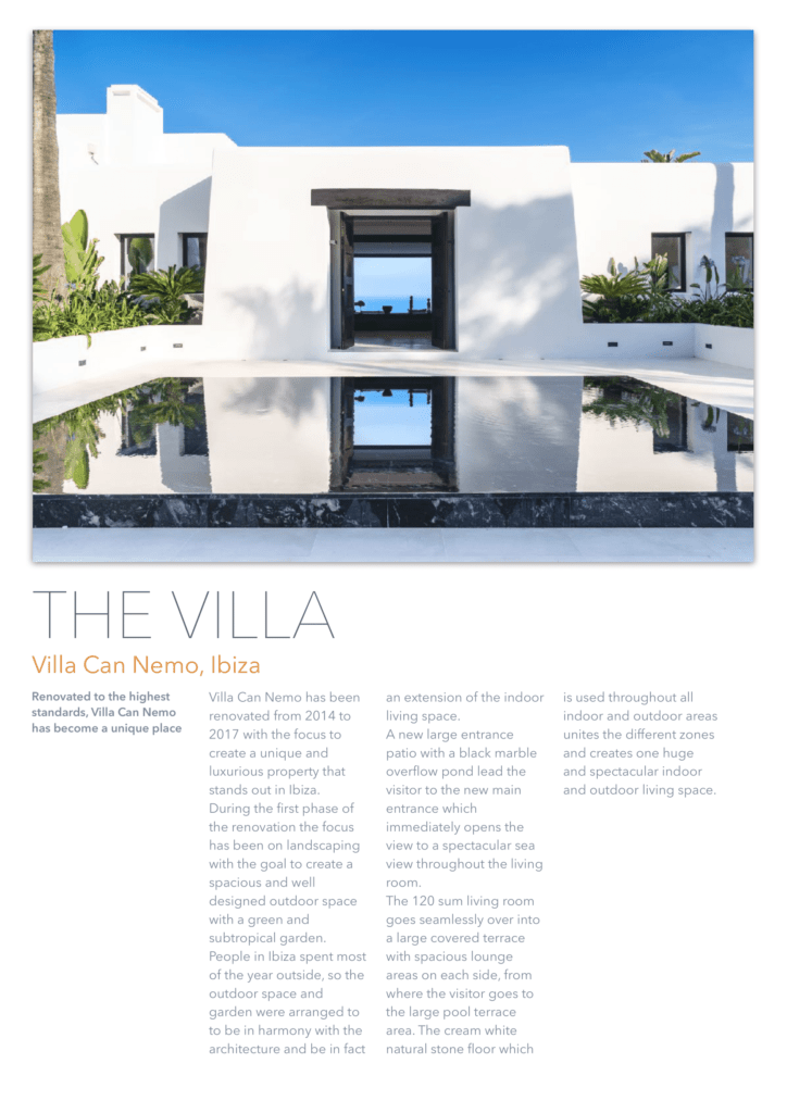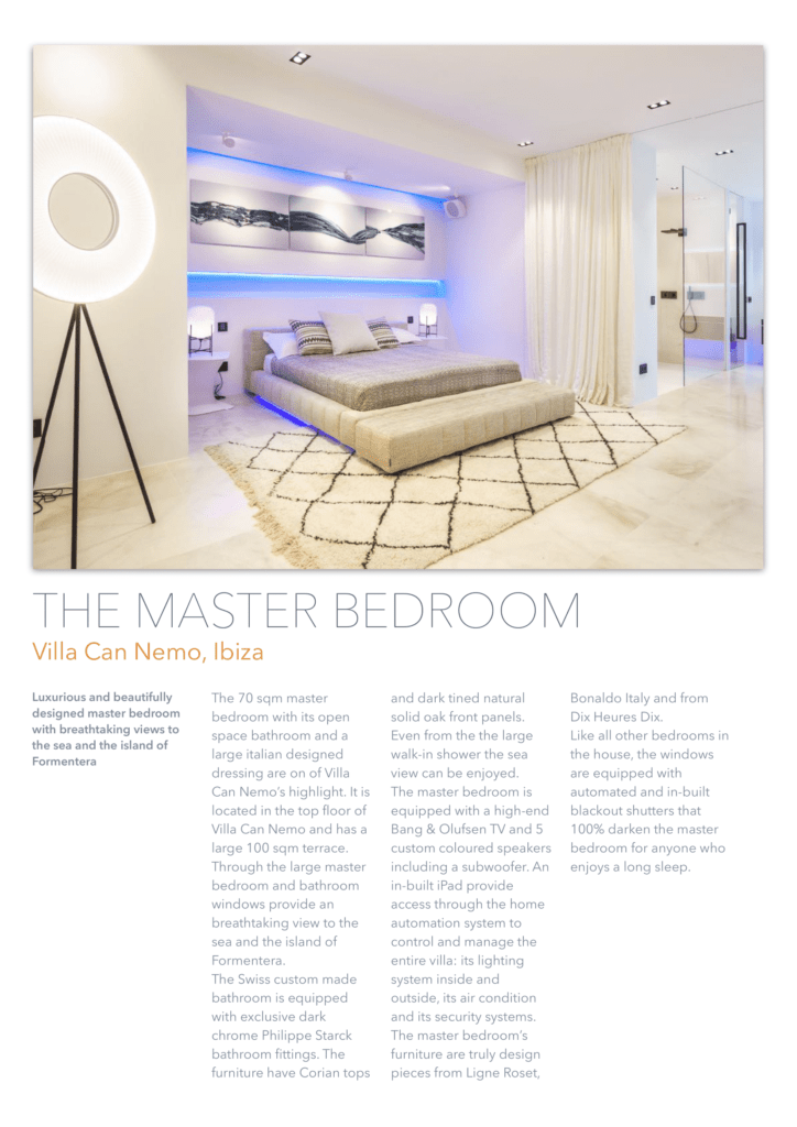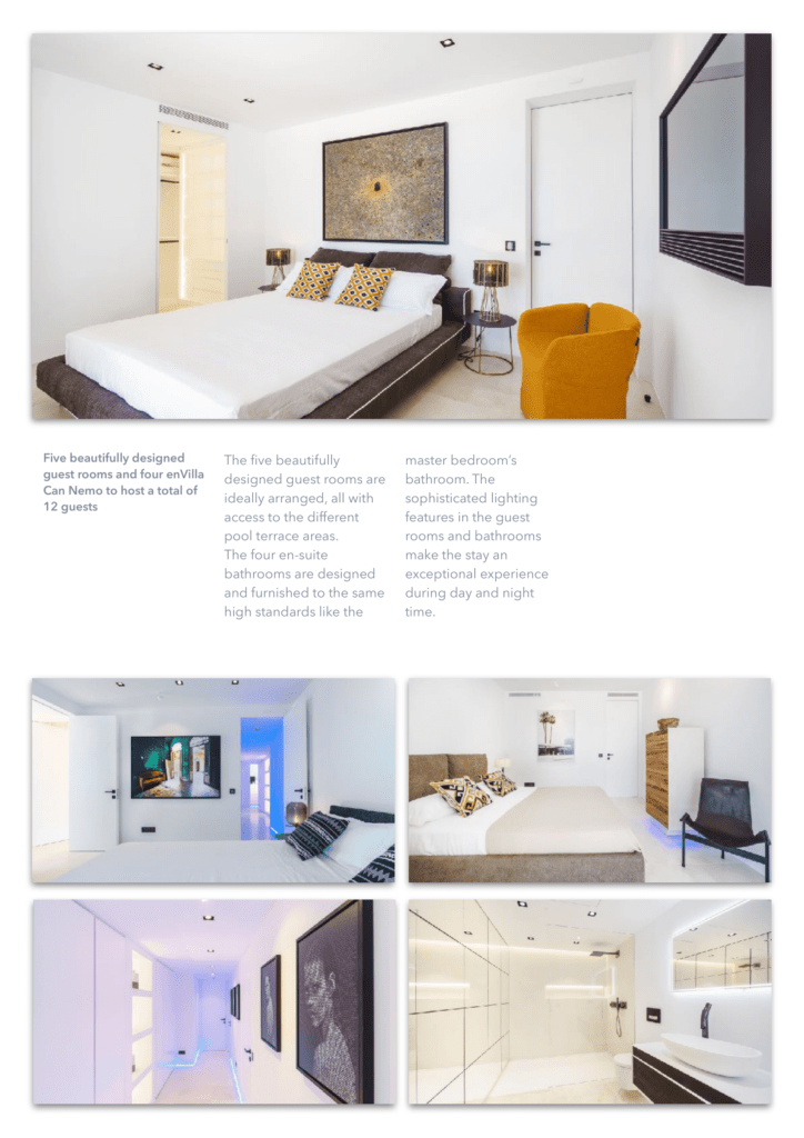 единенный отель расположен на вершине холма, всего в 450 метрах от моря, с потрясающим видом на открытое море и остров Форментера. Недвижимость находится в тихом районе рядом с Кап Мартине и деревней Иисуса. Некоторые из лучших горячих точек Ибицы и уединенных пляжей находятся всего в нескольких минутах ходьбы. До города Ибица можно добраться за 5 минут езды. Курорт Pacha Destino находится всего в 800 метрах от отеля, высококлассная площадка для вечеринок, до которой можно дойти пешком. Вилла CAN NEO также является идеальной арендной виллой для клиентов, которым требуется конфиденциальность и безопасность. Благодаря своему расположению, участок площадью 15000 кв. М имеет почти ровный и безопасный зеленый сад, окруженный соснами и высоким естественным забором. Чтобы сделать его безопасным по любому стандарту, 15 профессиональных камер видеонаблюдения покрывают всю внешнюю территорию и ворота с ее улицей. Высококачественная система сигнализации предлагает два режима работы: домашний режим и режим выезда. 24/7 служба безопасности получает предупреждение о срабатывании тревожного события (5 типов). Используя передовую систему домашней автоматизации, система сигнализации и все наружное освещение могут управляться из любого места в доме с iPhone или iPad, а также (по запросу) также могут быть полностью доступны, когда вы находитесь за пределами виллы.