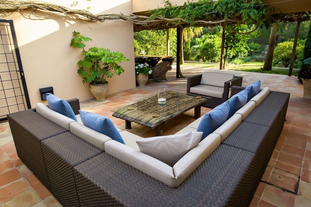 Роскошная современная вилла в тихом месте с потрясающим видом на море, недалеко от города Ибица и знаменитых пляжей Салинас и Кала Жондал Спит 12 (6 спален) Жилая площадь увеличена за счет красивого внутреннего двора с возможностью быть накрытым или открытым, с диванами и видом на красивый ухоженный лавандовый сад, растягивающийся на всю территорию. Террасы окружают виллу с обеденной зоной на 12 персон и стильными шезлонгами для отдыха. Собственность предлагает шесть двухместных спален, все с ванными комнатами. Это современная элитная вилла, обстановка здесь спокойная и тихая, оборудование и отделка самого высокого качества
